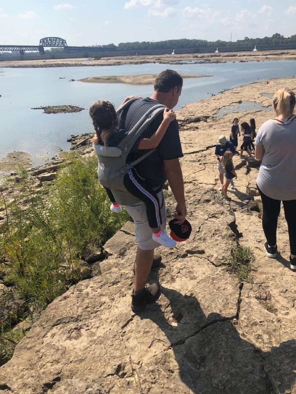 Avec l’aide d’un grand porte-bébé, la petite fille a pu se mettre sur le dos de Jim pendant la randonnée vers les chutes d’eau. D’après les photos, ils ont tous deux passé une journée très amusante en compagnie des camarades de classe de Ryan.