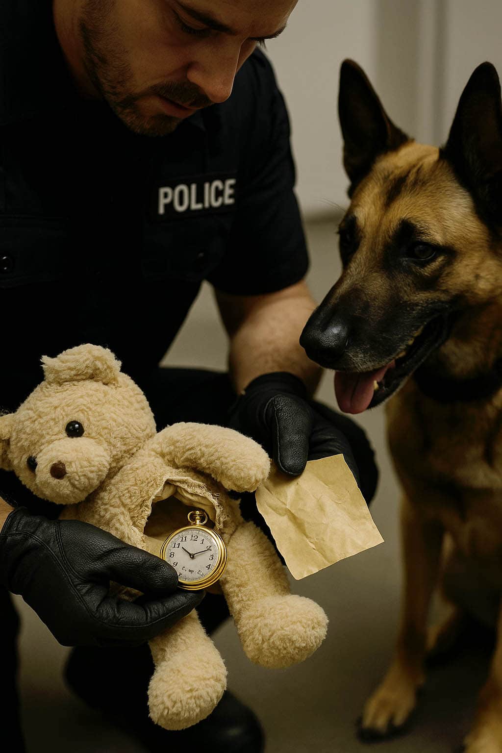 Sans perdre une seconde, l’agent Dubois s’approche de la famille. Avec tact, il leur explique que leur peluche a attiré l’attention du chien. Dans une salle à l’écart, sous le regard attentif des agents, l’ours est confié à Dubois.