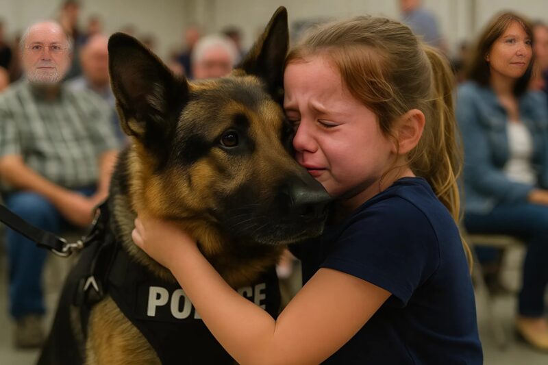 Contre toute attente, le chien émit un aboiement puissant avant de se libérer et de foncer vers Emma. La petite tendit une main hésitante. Rio y déposa doucement son museau avant de s’asseoir à ses pieds, immobile.