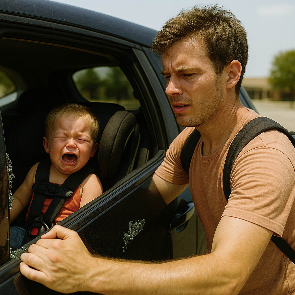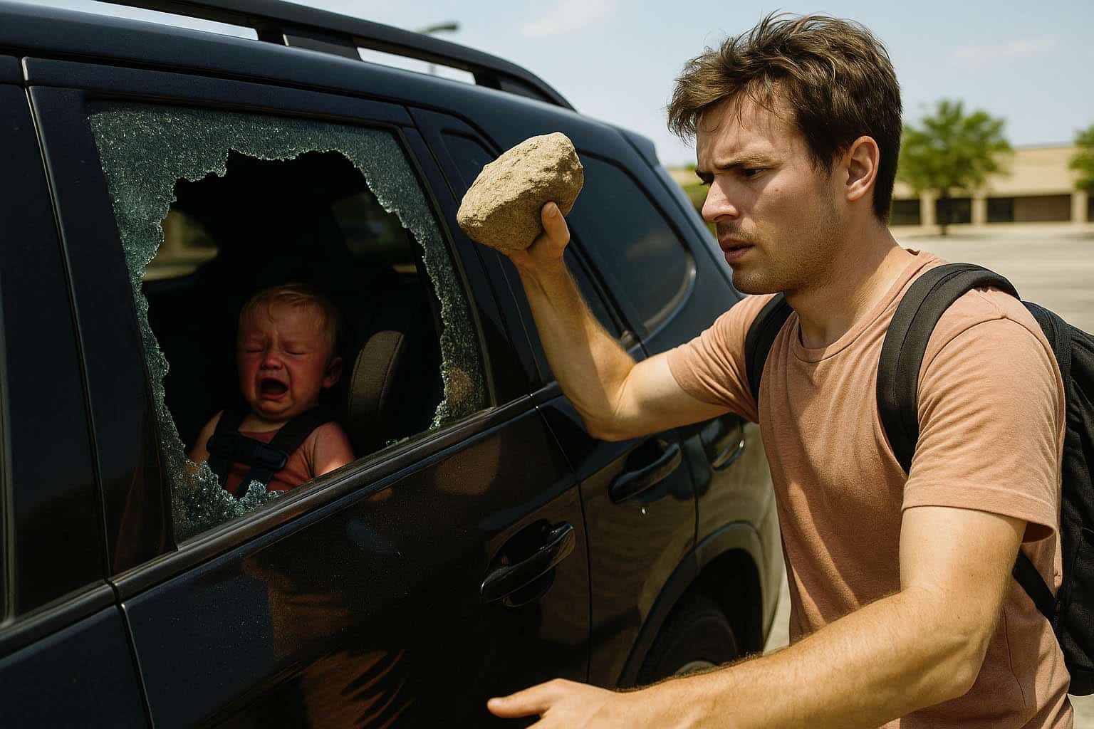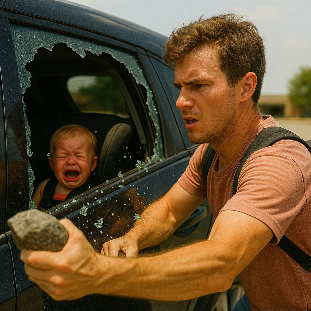 Sous une chaleur étouffante, chaque seconde comptait. Sans hésiter, Léo a saisi un caillou pour fracasser la vitre arrière et libérer l’enfant, qu’il a emmené en vitesse vers le centre médical le plus proche.