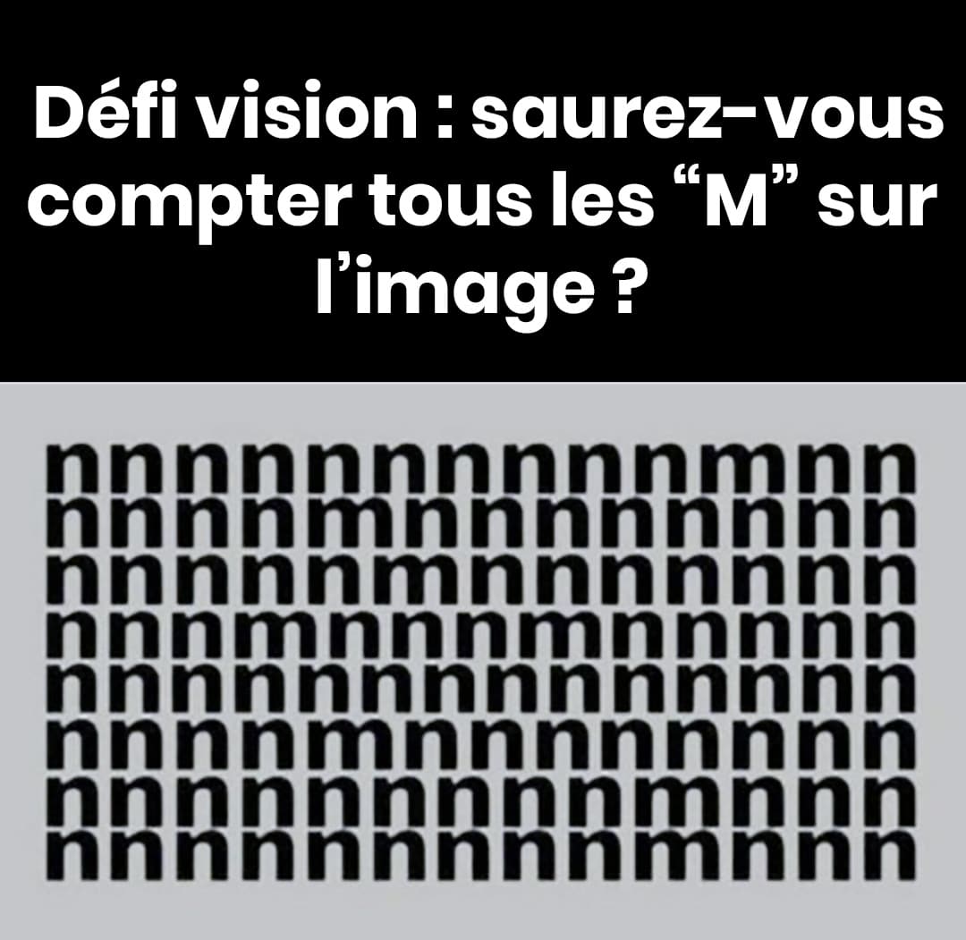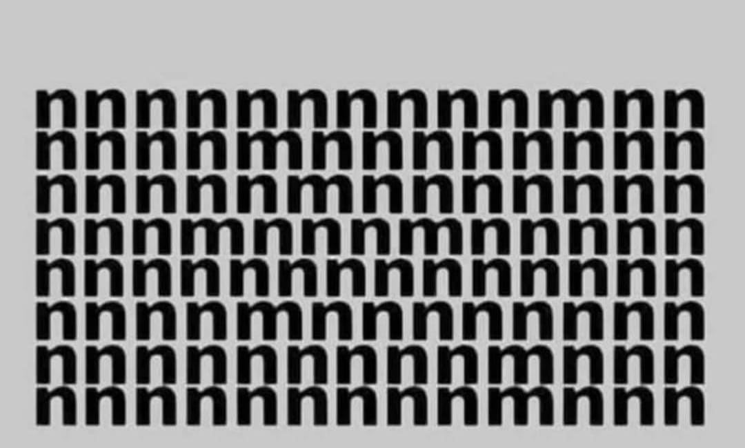 Notre esprit a une fâcheuse tendance à opter pour la solution la plus simple. Confronté à une série d’éléments identiques, il a tendance à généraliser et à ignorer les subtilités. Dans cette grille, la silhouette du « n » établit un arrière-plan si uniforme que le « m », bien que distinct, finit par se fondre dans le décor. La conséquence ? Notre vision a tendance à glisser sur la surface au lieu de s’y attarder. La clé est d’inverser cette dynamique : prenez votre temps, définissez une zone de recherche et guidez votre regard selon un trajet méthodique pour identifier chaque lettre différente.
