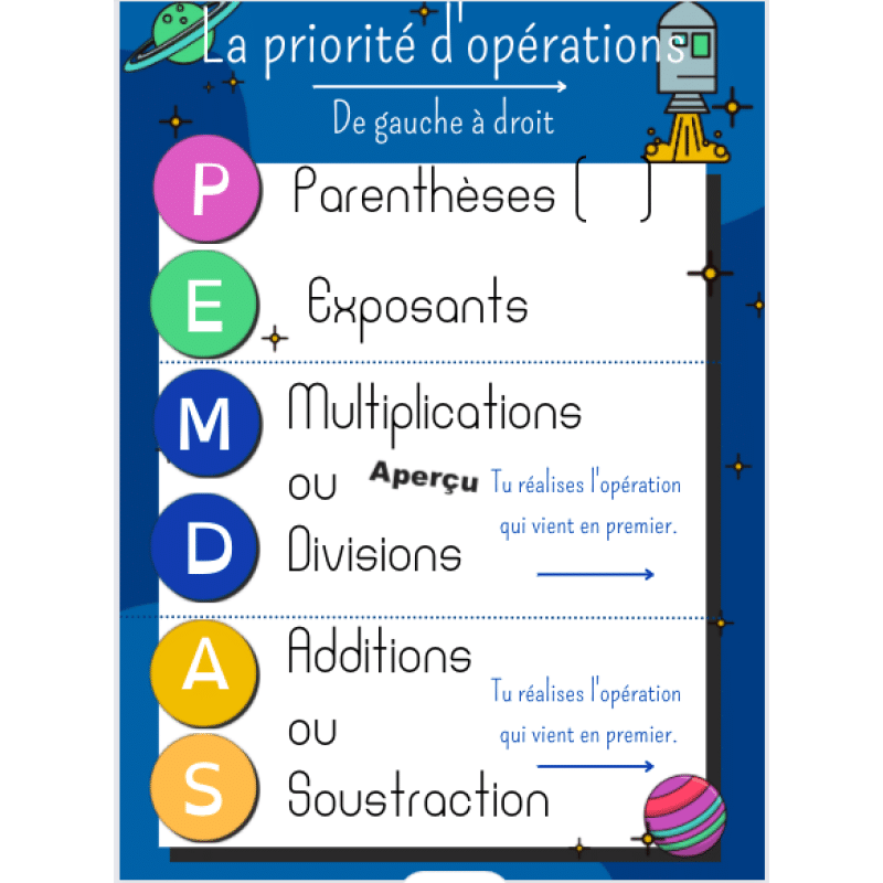 Pour éviter l’erreur, il faut se souvenir des règles de priorité, souvent résumées par l’acronyme PEMDAS :