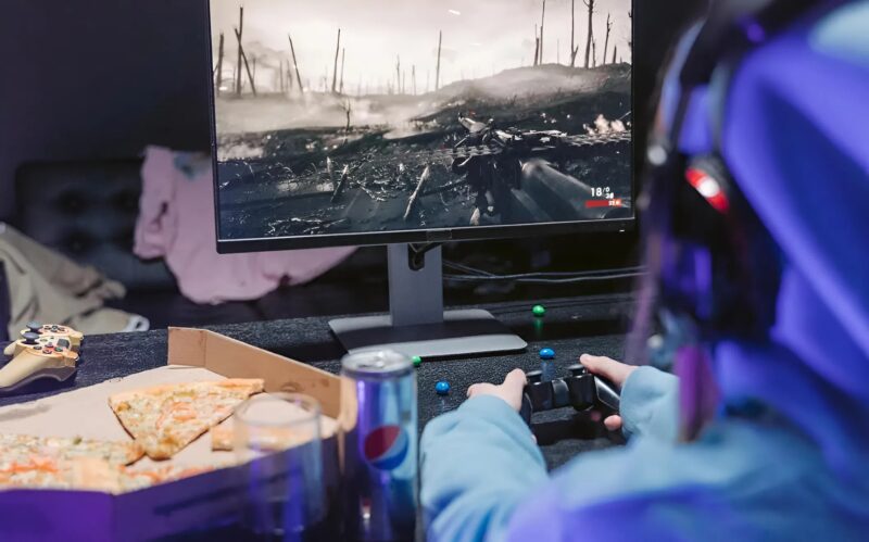 Alors que je m’apprêtais à ressortir, un son différent provenant du salon a retenu mon attention. Je m’y suis rendue et j’ai trouvé Julien, installé confortablement sur le canapé, écouteurs sur les oreilles et manette de jeu en mains.