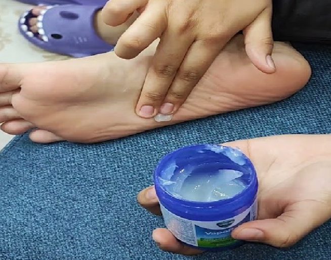 Au coucher, badigeonnez vos pieds de Vicks, recouvrez de chaussettes, et laissez poser jusqu’au matin. Au réveil : une peau visiblement plus lisse, nourrie, et moins abîmée. À inclure dans votre routine beauté nocturne !