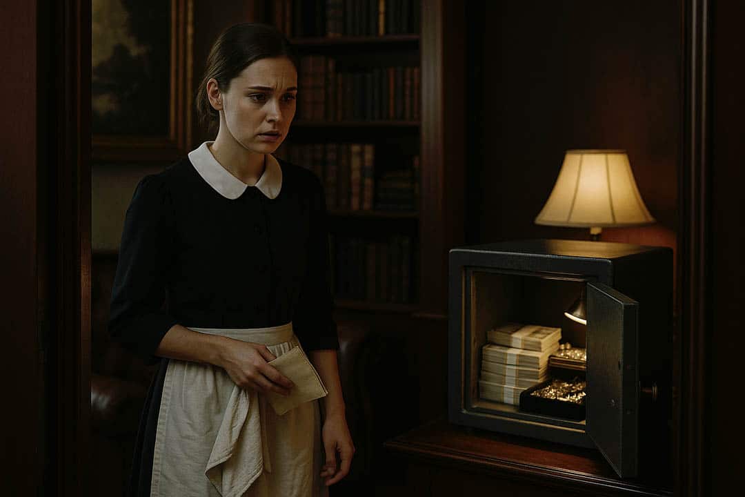 Par une journée particulièrement pluvieuse, l’homme d’affaires décida de vérifier ses intuitions. Dans son cabinet de travail, il laissa intentionnellement son coffre-fort béant. À l’intérieur, des bijoux de valeur et des piles de billets étaient clairement visibles sous l’éclairage.