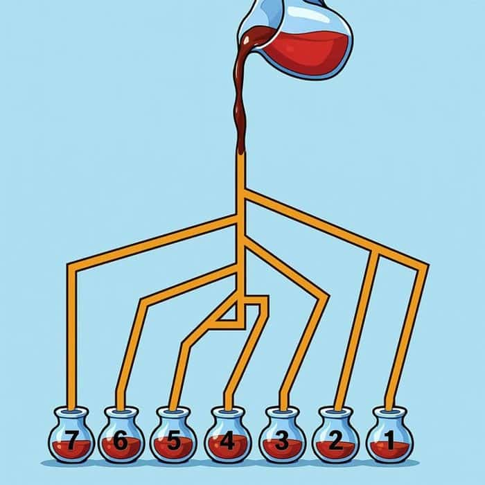 Un simple robinet, un réseau de conduits et sept récipients vous attendent. La réponse semble évidente, mais seule une observation minutieuse vous permettra de résoudre cette énigme captivante. Suivez le parcours de l'eau comme si vous étiez une goutte d'eau vous-même.