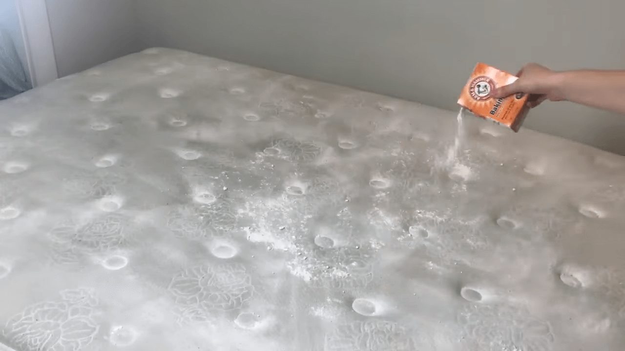 - Répartissez généreusement environ 125 grammes de bicarbonate sur l’ensemble de votre matelas.