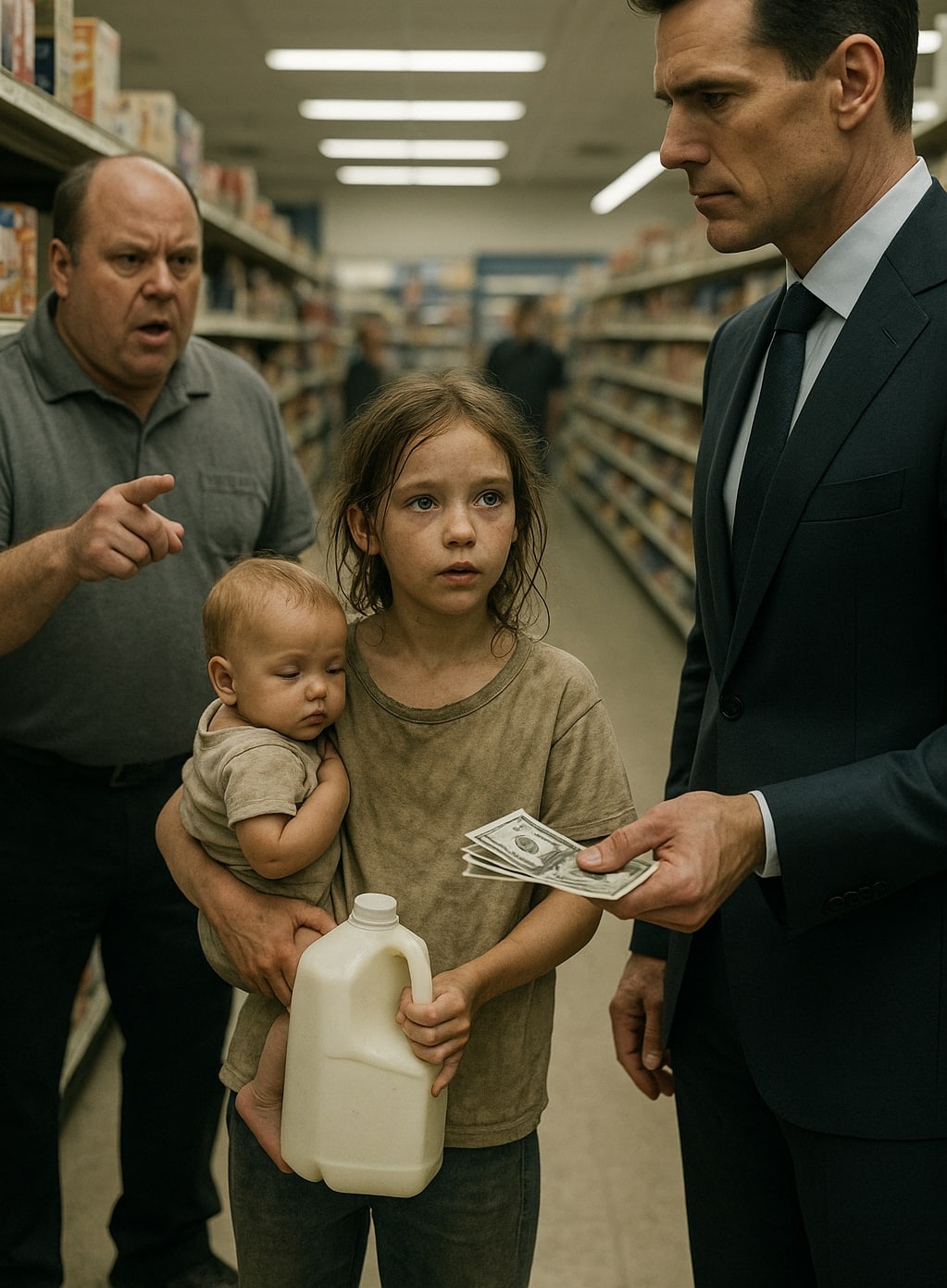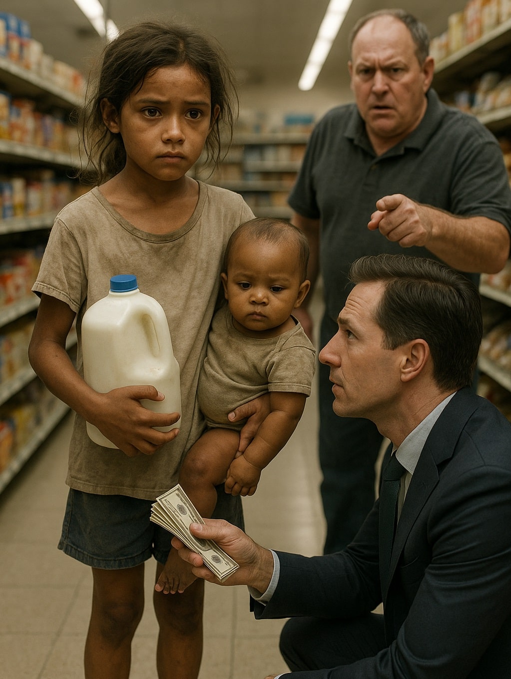 Léna approchait à peine la dizaine d’années. Ses habits trop amples, sa chevelure désordonnée et son expression déterminée trahissaient une existence précocement marquée par les épreuves. Confrontée à l’employé qui menaçait de contacter les forces de l’ordre, elle ne s’est pas mise à pleurer. Elle a discuté, droite et fière, justifiant les besoins nutritionnels de son jeune frère.