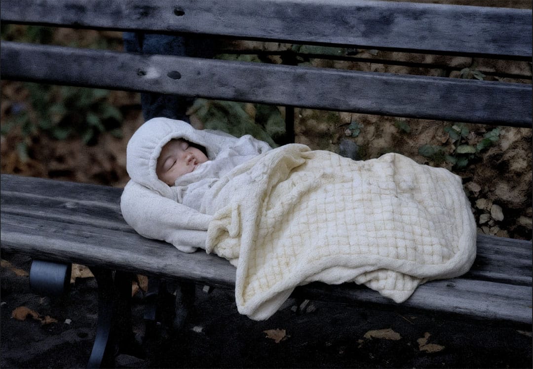 D’abord, elle imagina une hallucination auditive – ces cris imaginaires que toute mère a déjà cru percevoir. Mais les pleurs persistèrent, s’intensifiant jusqu’à devenir insistants. Le cœur battant la chamade, elle suivit cette plainte déchirante jusqu’à un banc de bus complètement vide.