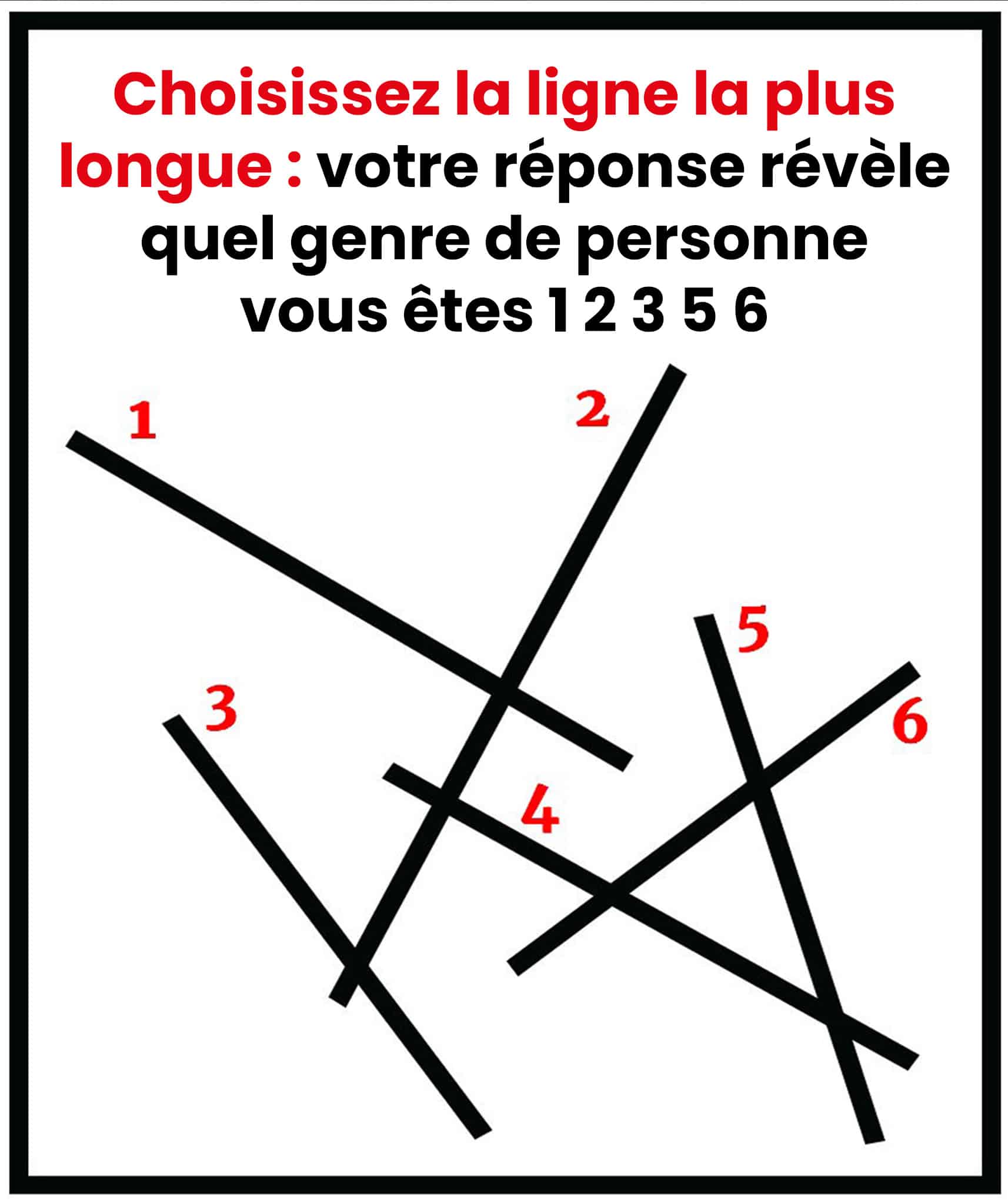 Un simple test visuel avec six traits noirs peut révéler des aspects étonnants de votre caractère. Votre perception de la longueur trahit en réalité votre manière d'appréhender le monde. Plongez dans cette analyse personnalisée qui décryptera votre profil unique.