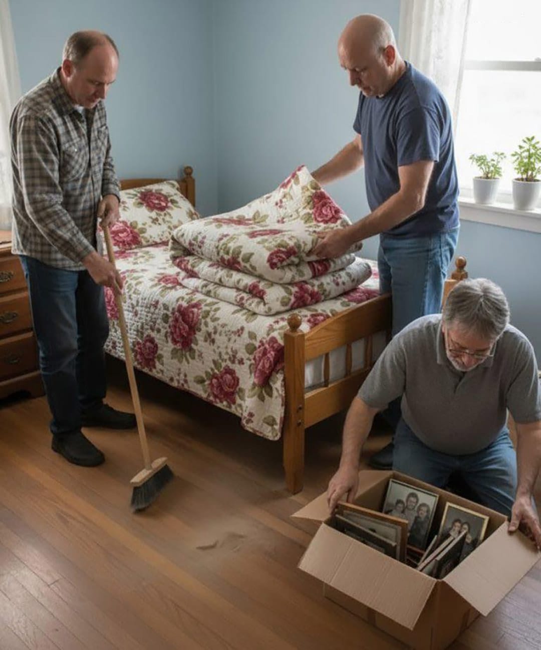Dans une demeure campagnarde modeste, les trois enfants font le tri des effets personnels de leur défunte mère. L’inventaire semble bien ordinaire : un vestiaire ancien, quelques souvenirs sans valeur et trois couvertures défraîchies soigneusement rangées.
