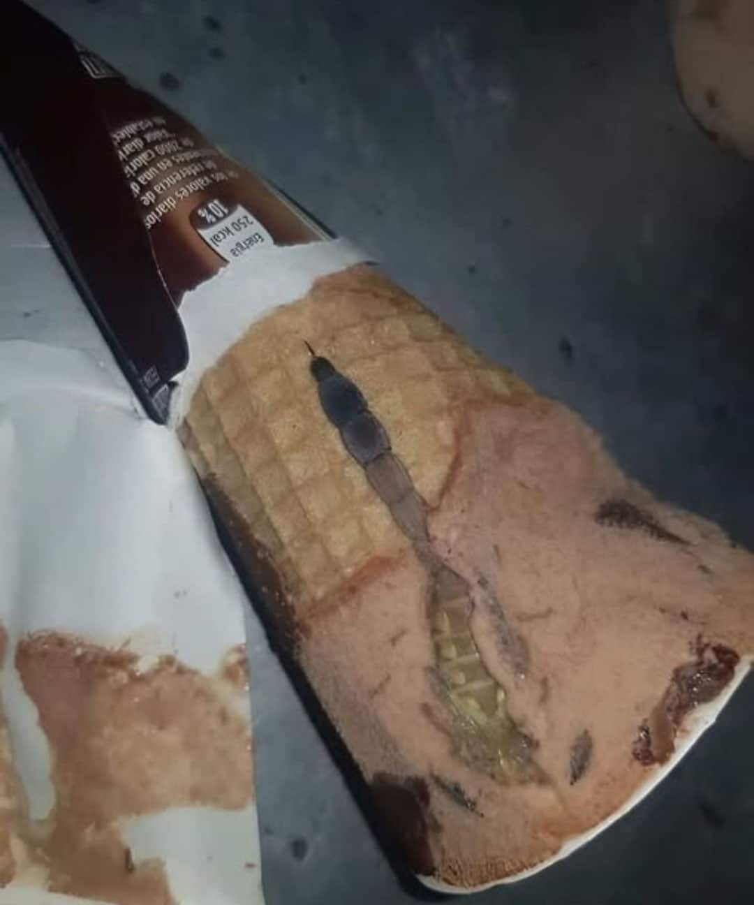 Tout semblait parfaitement ordinaire : le cornet croustillant, la couche de chocolat fondante, l’arôme enivrant du cacao… jusqu’à ce qu’un élément incongru retienne son regard. En poursuivant sa dégustation, elle a découvert un objet insolite, un petit élément rigide qui n’aurait pas dû se trouver là. Aucun danger en perspective, mais suffisamment déroutant pour éveiller nos soupçons. Et si nos douceurs favorites dissimulaient parfois des intrus inattendus ?