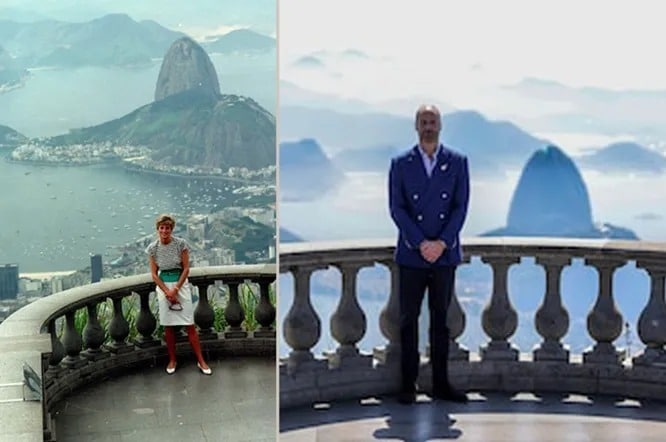 L’un des moments les plus marquants a été sa visite à la statue du Christ Rédempteur (Corcovado), l’un des lieux les plus iconiques du Brésil. William a repris presque au millimètre les poses de sa mère, immortalisées en avril 1991. Même le positionnement sur le belvédère a été soigneusement reproduit, créant un parallèle visuel troublant et incroyablement émouvant. Internet s’est immédiatement enflammé : les montages comparatifs ont afflué, et de nombreux admirateurs ont confié avoir eu l’impression de revoir Diana le temps d’un battement de cœur.