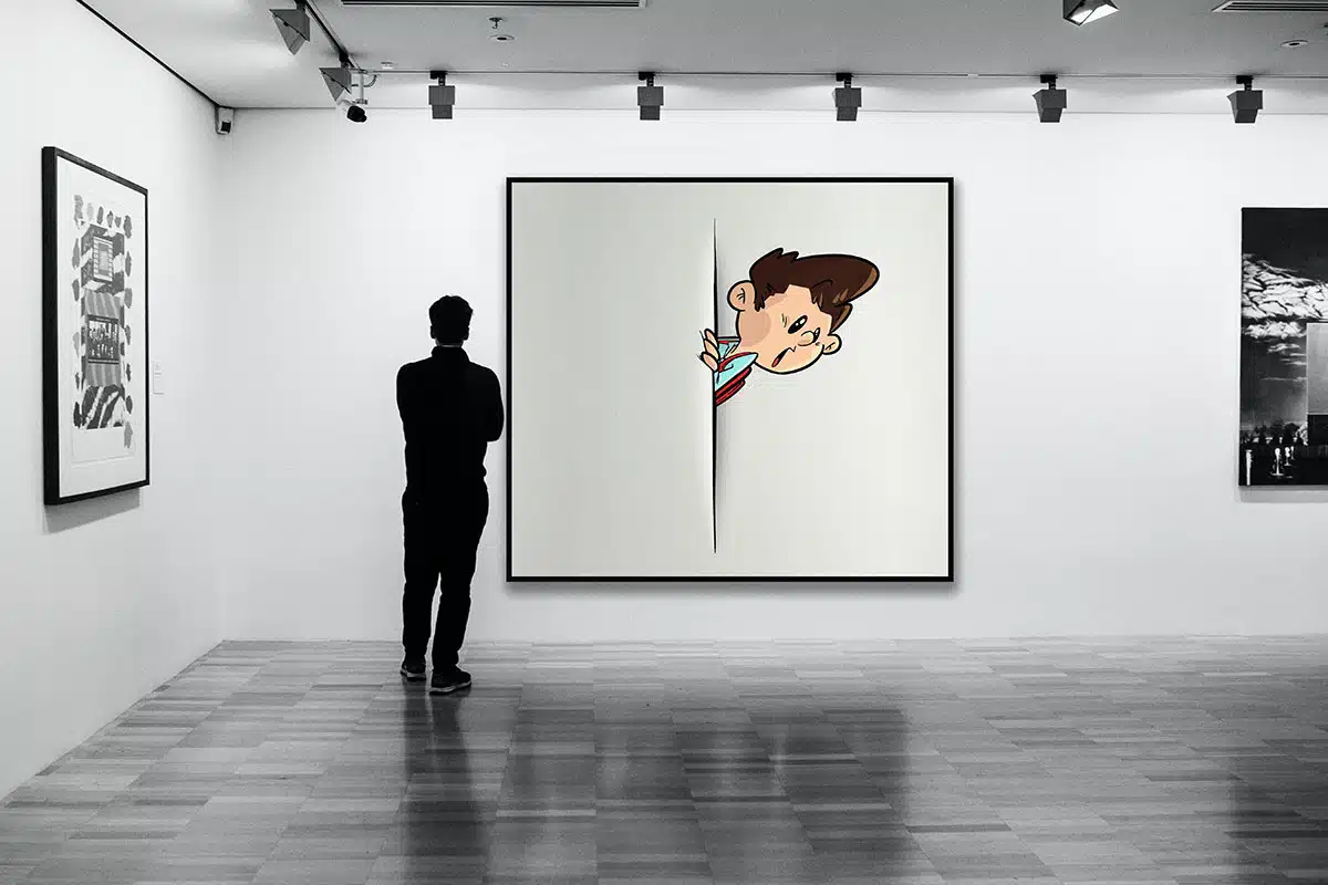 Dans le quartier du Marais, Julien est saisi par la puissance des toiles exposées, signées du mystérieux « TPA ». C’est alors qu’une voix qu’il n’a pas entendue depuis une décennie résonne derrière lui : Thomas, désormais un homme accompli, élégant et empreint d’une assurance tranquille. Sans hostilité mais avec une solennité palpable, il l’invite à contempler une œuvre dissimulée sous un drap de velours rouge.