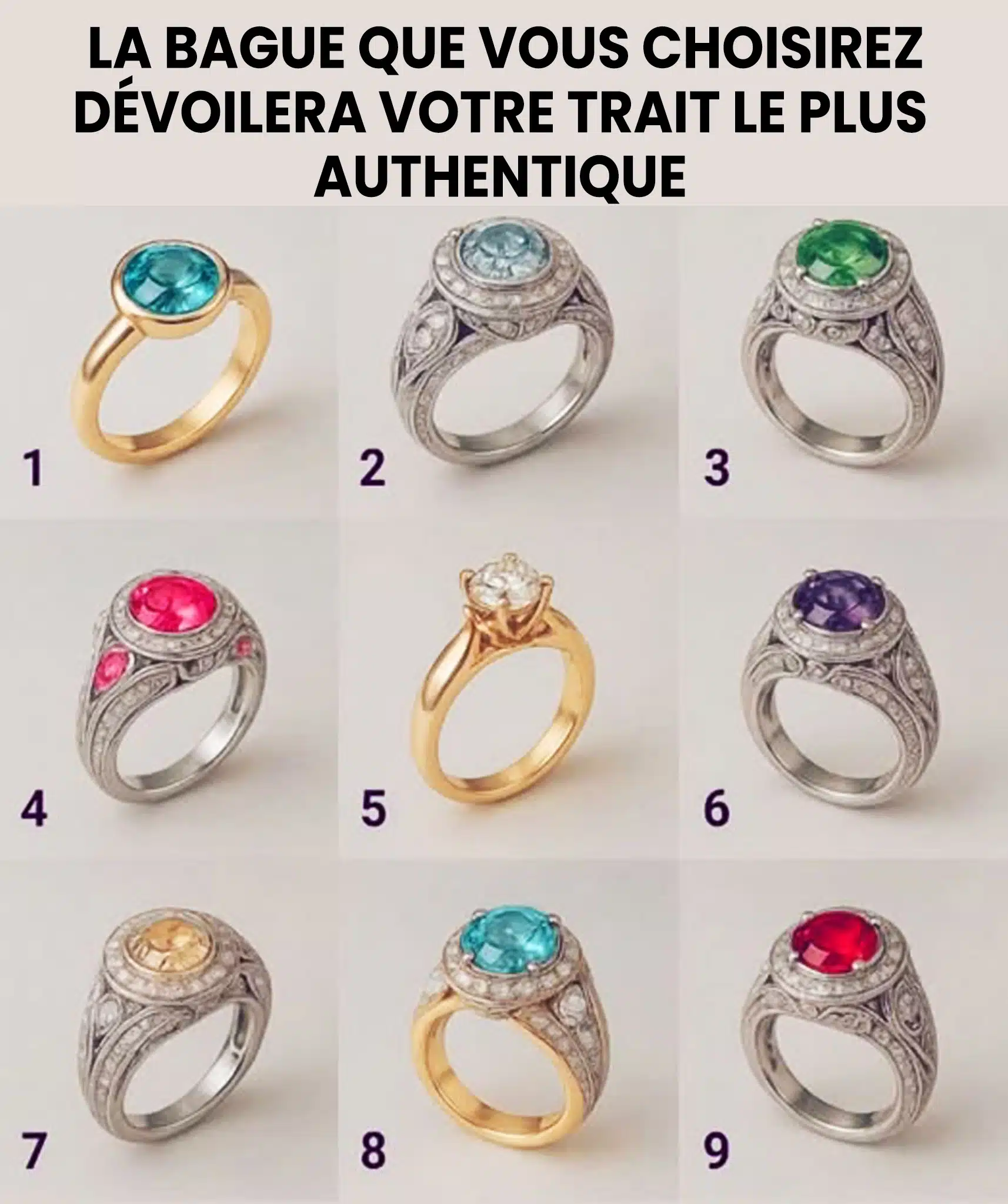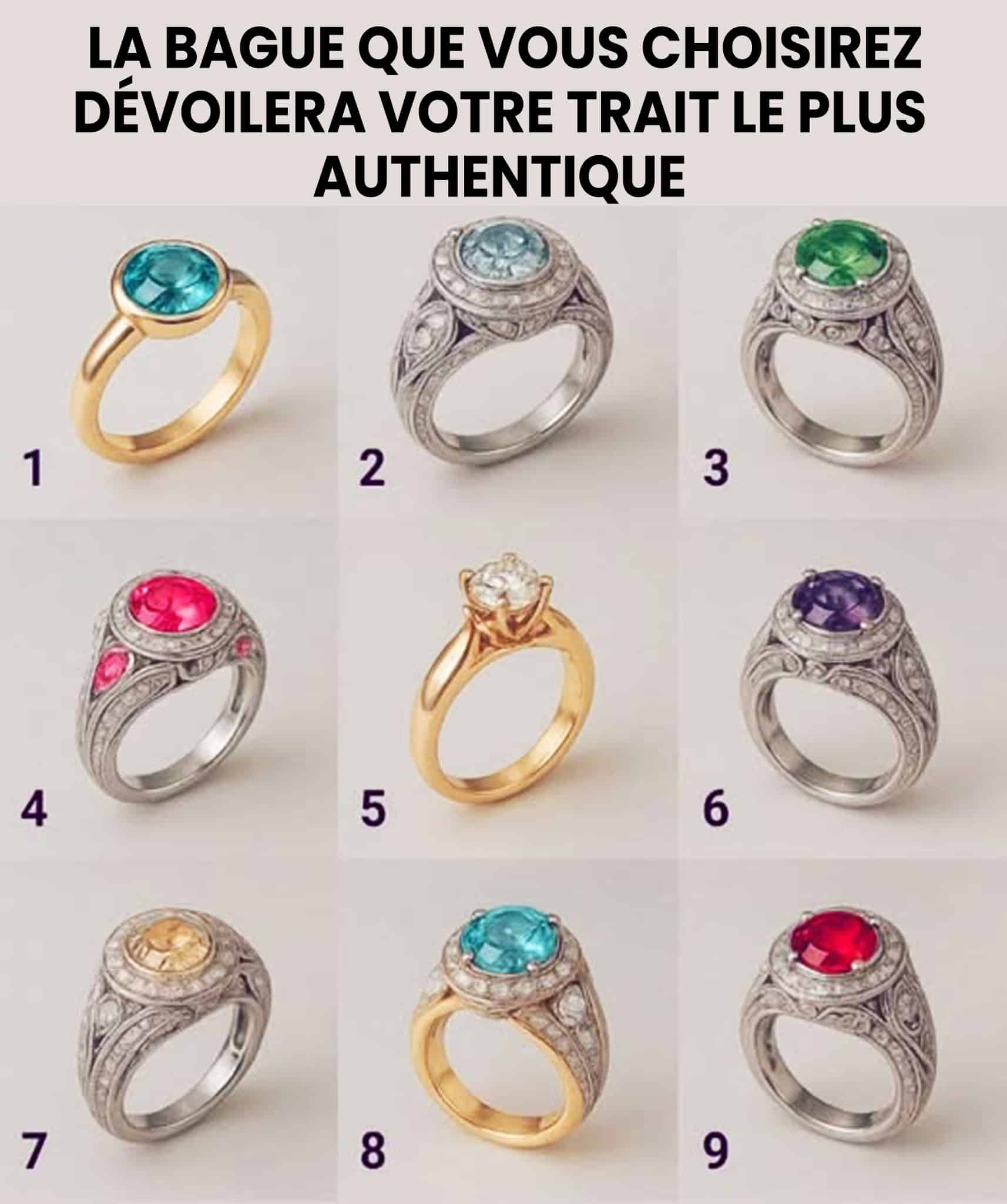 Avez-vous déjà remarqué comme certaines bagues semblent presque « vous appeler » depuis une vitrine ? Comme si leur couleur, leur éclat ou leur forme réveillaient quelque chose de très intime. On croit souvent qu’il s’agit d’un simple coup de cœur esthétique… mais pas uniquement. Derrière chaque préférence se cache une petite histoire, une vibration personnelle, un reflet discret de ce qui compose votre caractère. Alors, laquelle choisiriez-vous instinctivement ? Et surtout, que pourrait-elle dire de vous ? Prête à jouer le jeu ? Vous risquez d’être surprise.