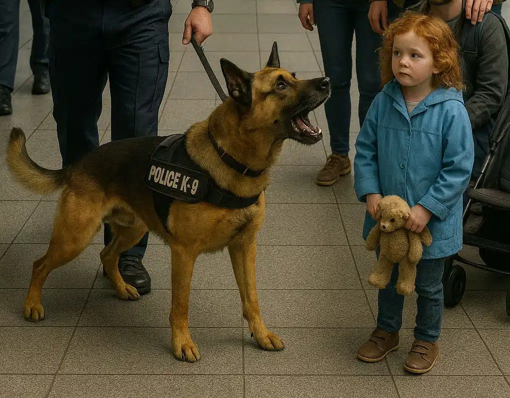 Léo n’était pas un simple chien de patrouille. Ce malinois belge, compagnon de l’agent Martin depuis six ans, avait un don rare : il percevait l’invisible. Ce jour-là, alors qu’il scrutait les voyageurs du terminal B, son attention s’est figée sur une enfant. Pas de menace apparente, juste une fillette serrant son ours en peluche contre elle. Pourtant, son instinct ne le trompait jamais.