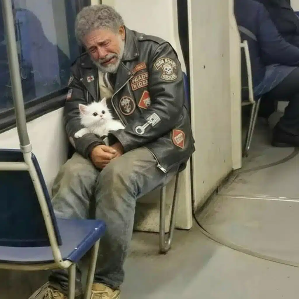 Un motard en larmes dans le métro étreignait un chaton, son secret bouleversant allait être révélé