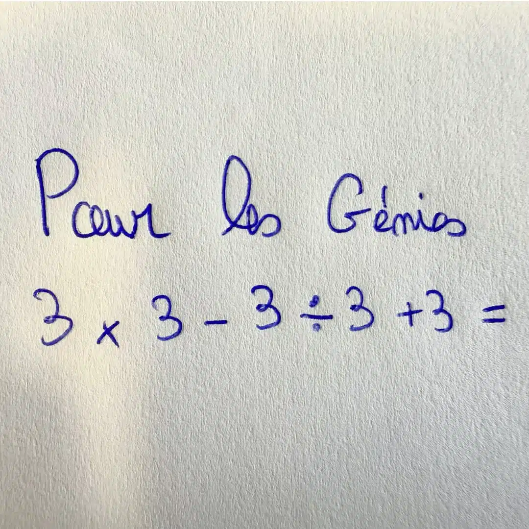 Testez vos compétences en calcul avec cette opération apparemment simple mais subtile : 3×3 + 3÷3 - 3. Saurez-vous parvenir au bon résultat sans vous tromper ? Un exercice parfait pour stimuler votre logique mathématique.