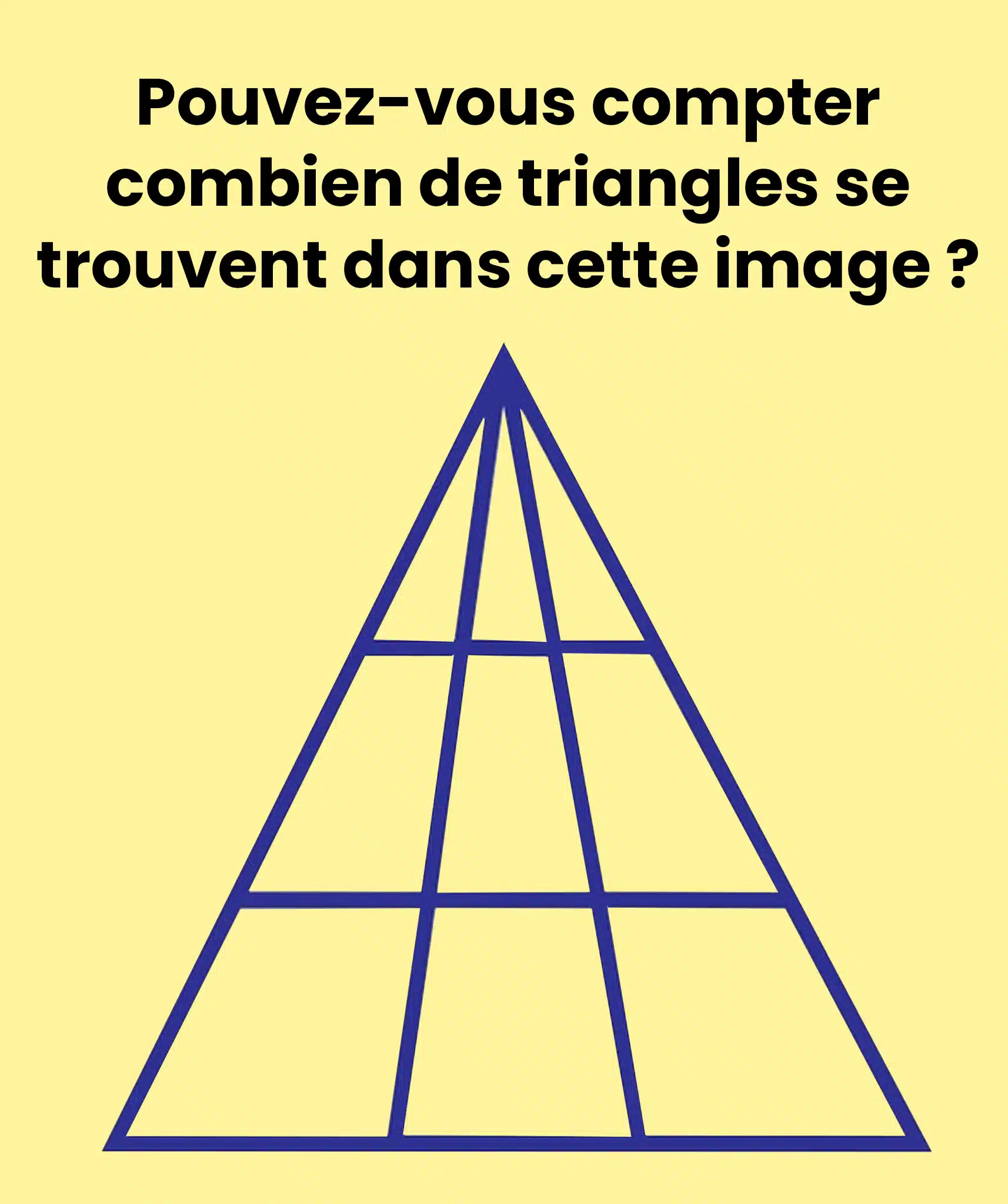 Ce genre de défi visuel repose sur un mécanisme fascinant : il paraît enfantin au premier abord. Vous jetez un œil et pensez qu’un simple comptage suffira. C’est précisément à ce moment que l’astuce opère : si certains triangles sautent aux yeux, d’autres se cachent malicieusement grâce à des effets de perspective et d’emboîtement.