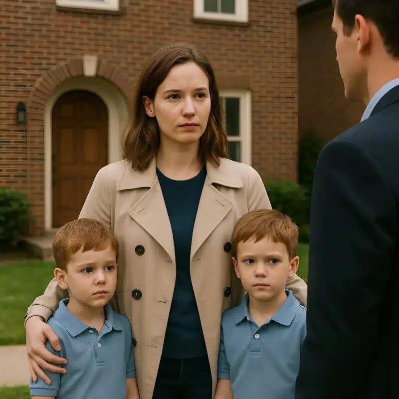 Elle se tenait devant la demeure de Julien, entourée des jumeaux. L’homme, désormais établi et fortuné, avait d’abord cru à une erreur. Puis son regard s’était attardé sur les visages enfantins… et y avait reconnu l’écho troublant de sa propre enfance.