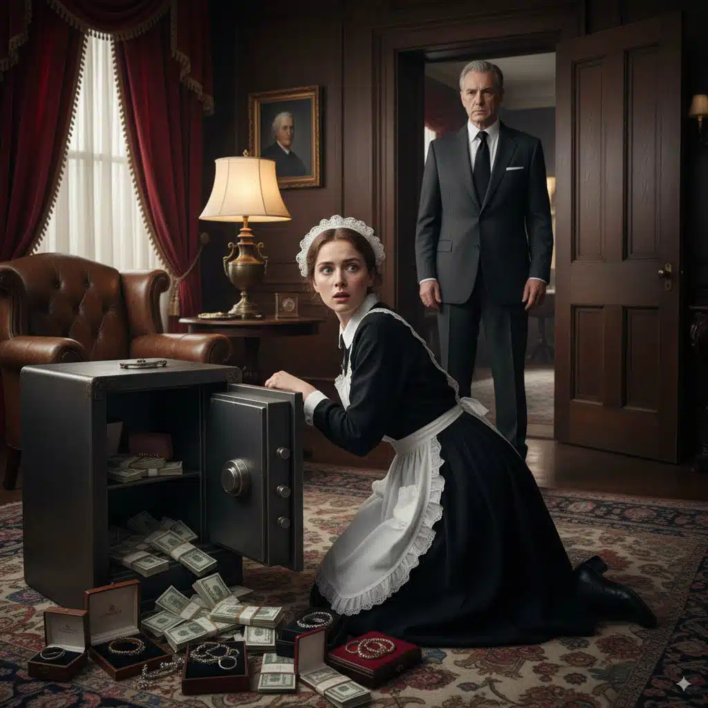 Par une journée particulièrement pluvieuse, l’homme d’affaires décida de vérifier ses intuitions. Dans son cabinet de travail, il laissa intentionnellement son coffre-fort béant. À l’intérieur, des bijoux de valeur et des piles de billets étaient clairement visibles sous l’éclairage.