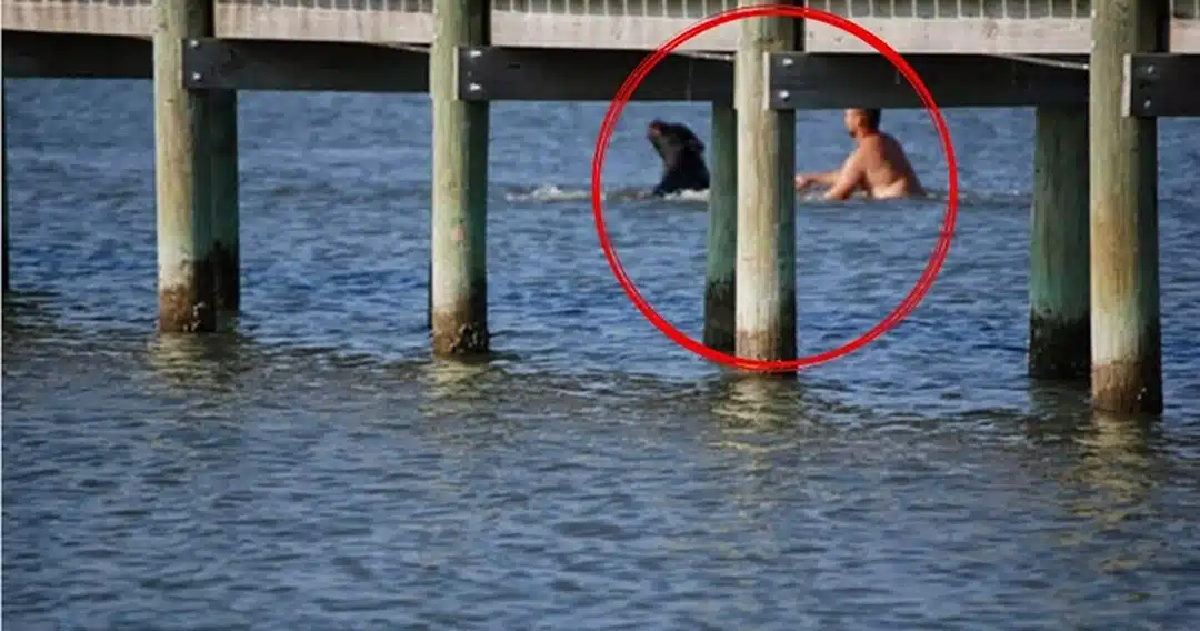 La situation est extrêmement risquée : approcher un animal sauvage de près de 200 kilos, désorienté et effrayé, représente un vrai danger. Adam, conscient du péril, nage jusqu’au plantigrade, le saisit par les pattes avant et entreprend de le remorquer vers le rivage.
