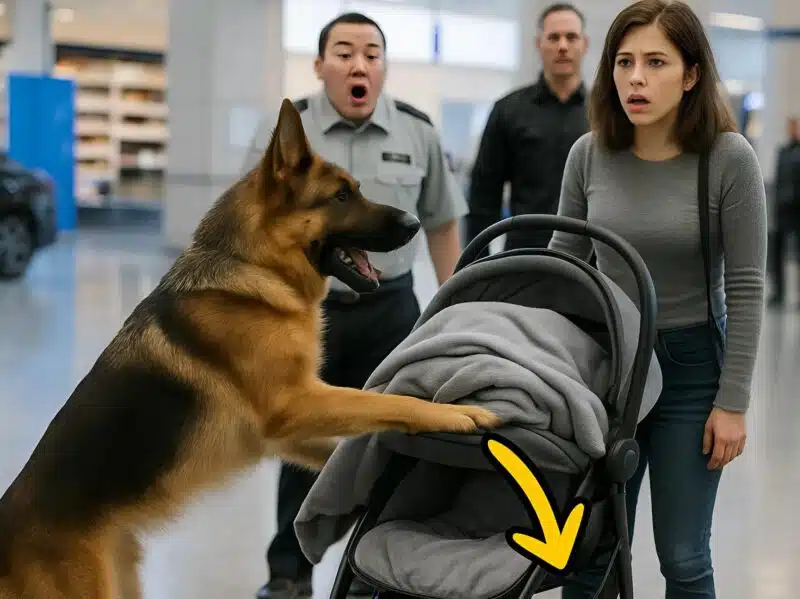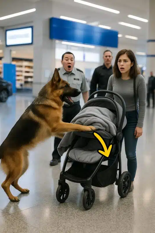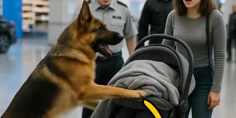 Une chienne de sécurité déjoue un drame à l’aéroport : sa réaction face à une poussette révèle l’impensable