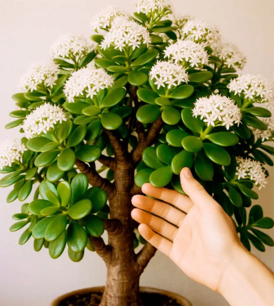 … votre jade peut fleurir et devenir une magnifique pièce centrale de votre décoration.