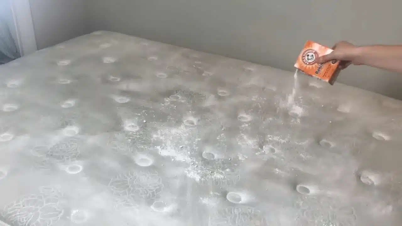 - Répartissez généreusement environ 125 grammes de bicarbonate sur l’ensemble de votre matelas.