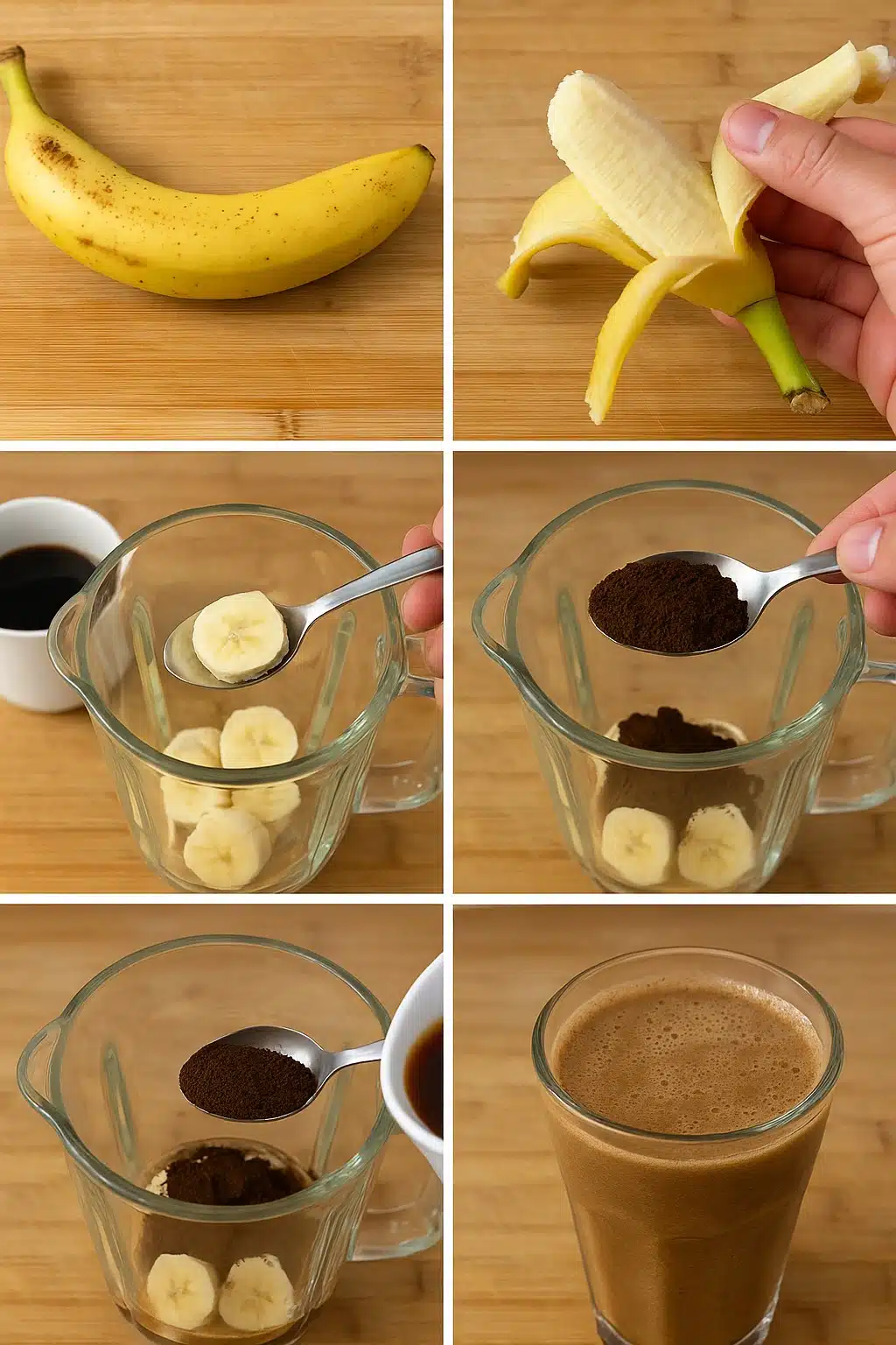 Après trois jours, coupez les épluchures en morceaux et déposez-les dans le mixeur. Ajoutez l’infusion de café puis mixez jusqu’à l’obtention d’une préparation lisse et légèrement mousseuse.