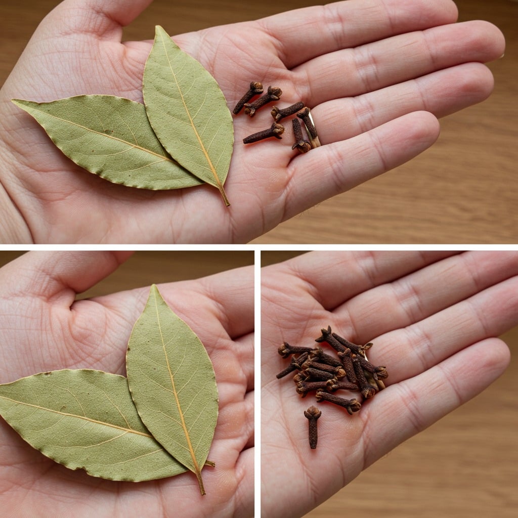 - Placez délicatement les feuilles de laurier et les clous de girofle dans un récipient adapté.