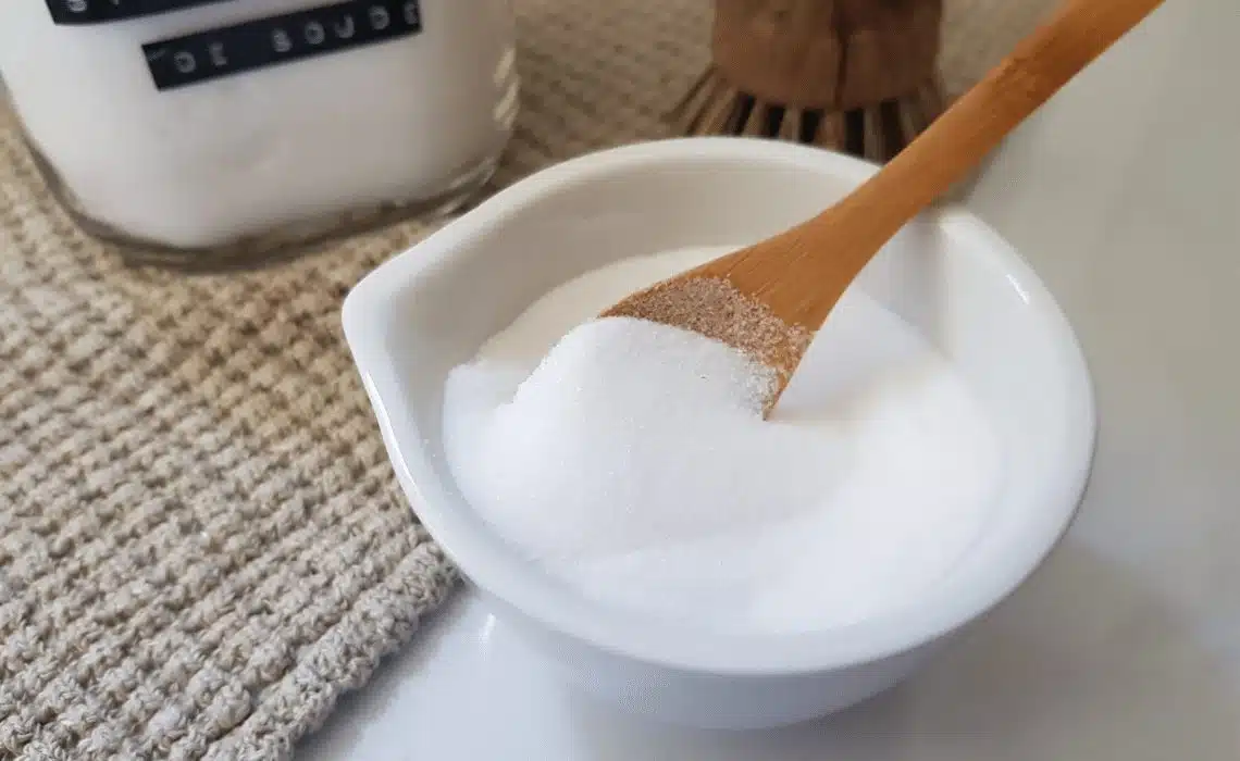 - Incorporez-y deux ou trois généreuses cuillères à soupe de bicarbonate.
