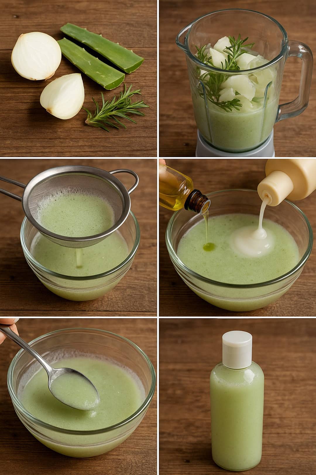 Pour le réaliser, prévoyez 20 g de romarin frais (ou l’équivalent en romarin séché, soit 10 g), 2 cuillères à soupe de gel d’aloe vera pur (soit environ 30 ml), une cuillère à café d’huile d’amande douce (5 ml), 250 ml d’eau et 200 ml de shampoing neutre. Pour une action purifiante renforcée, certaines recettes ancestrales suggèrent d’ajouter un quart d’oignon finement haché, mais cette étape est totalement optionnelle selon vos goûts.