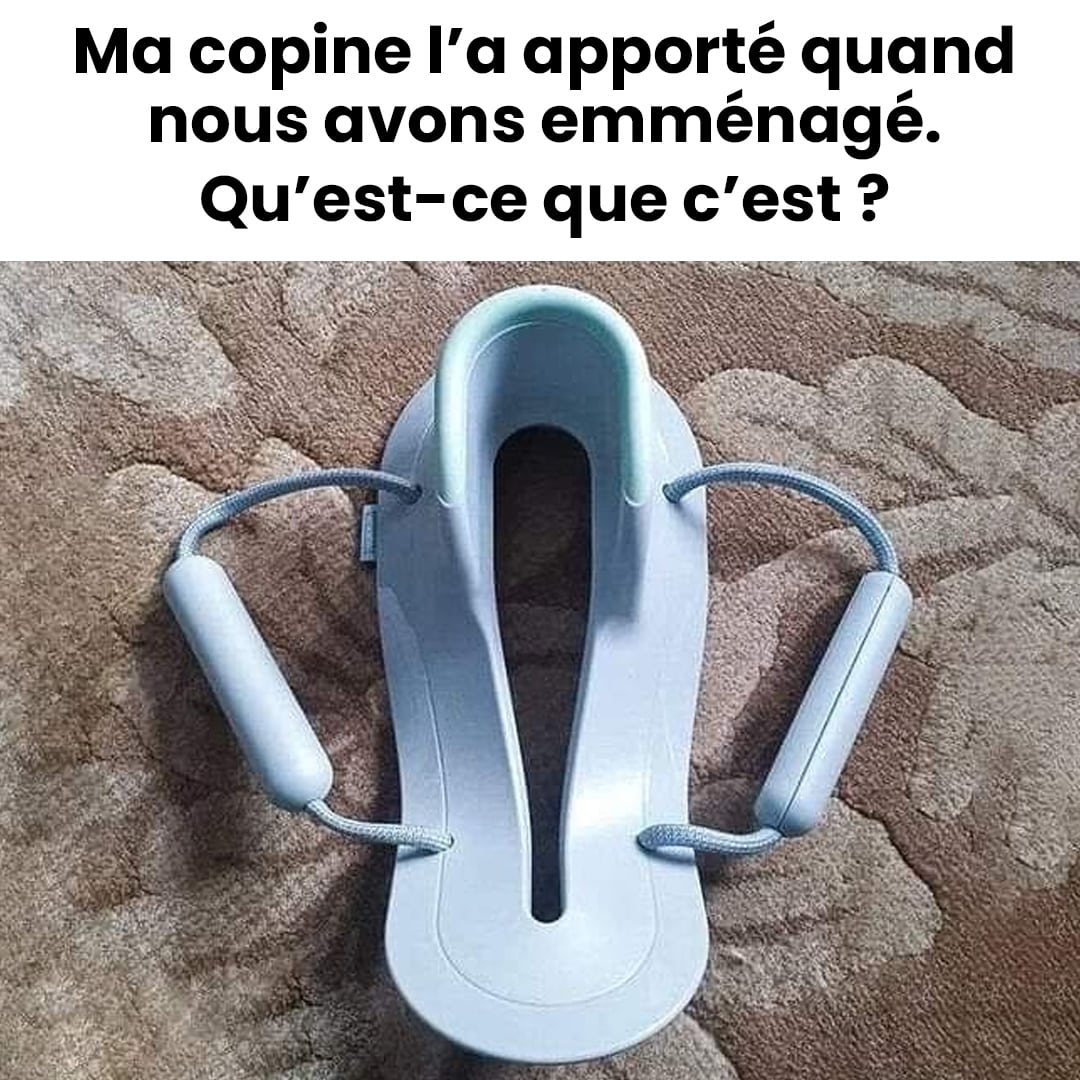 Pour conclure, cet objet au design inhabituel a provoqué l’hilarité : certains y voyaient un urinoir féminin nomade. Erreur ! Il s’agissait en réalité d’un équipement pour renforcer la sangle abdominale. Démonstration que l’apparence ne révèle pas toujours l’utilité.