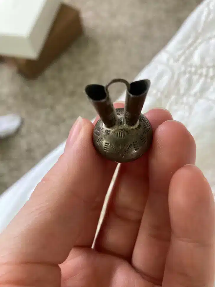 Un élégant objet en argent, finement ouvragé, offert pour célébrer une union… mais sans notice explicative. La solution est finalement apparue : il s’agissait d’un vase cérémoniel amérindien. Une pièce chargée de symbolisme, bien que son sens profond ait initialement échappé aux heureux élus.