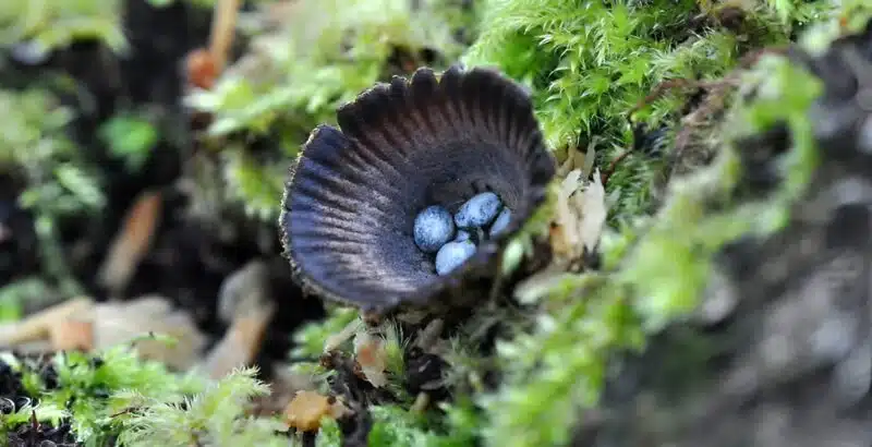 Ces merveilles mycologiques appartiennent à la famille des nidulariacées – une dénomination scientifique pour décrire ces champignons évoquant des nids d’oiseaux en réduction. Leur caractéristique la plus remarquable ? Leur cavité abrite de petites sphères arrondies, semblables à des œufs miniature. Mais contrairement aux apparences, ces « œufs » ne libéreront jamais d’oisillons : ils renferment les spores, ces particules infinitésimales qui assurent la reproduction fongique.