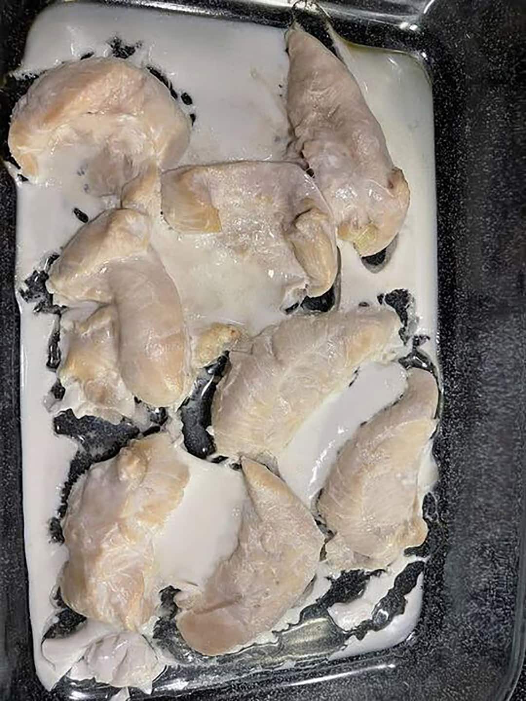 Lorsque la viande de poulet cuit, ses protéines se modifient structurellement, un peu comme lorsque le blanc d’œuf coagule dans la poêle. Ce mécanisme, nommé « dénaturation », entraîne la libération d’eau et de protéines. Ces dernières se combinent alors en surface pour former un fin film blanc légèrement collant. Un processus tout à fait banal, particulièrement observable sur les morceaux peu gras comme le blanc.
