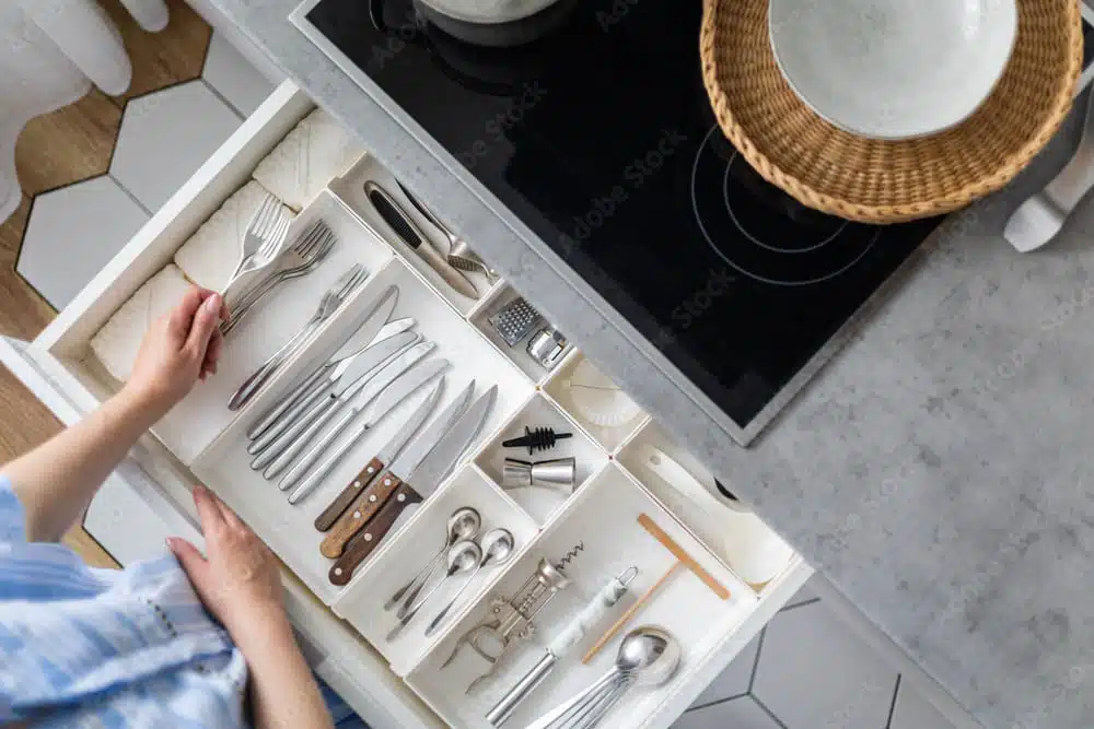 On nettoie les plans de travail, l’évier, la plaque de cuisson… mais qui pense vraiment à ouvrir ses tiroirs à couverts autrement que pour attraper une fourchette ? Ces rangements discrets deviennent pourtant, au fil des jours, un petit grenier à poussières et à miettes. Rien de dramatique, bien sûr, mais cela crée une sensation de désordre invisible et altère l’impression d’ensemble d’une cuisine impeccable.